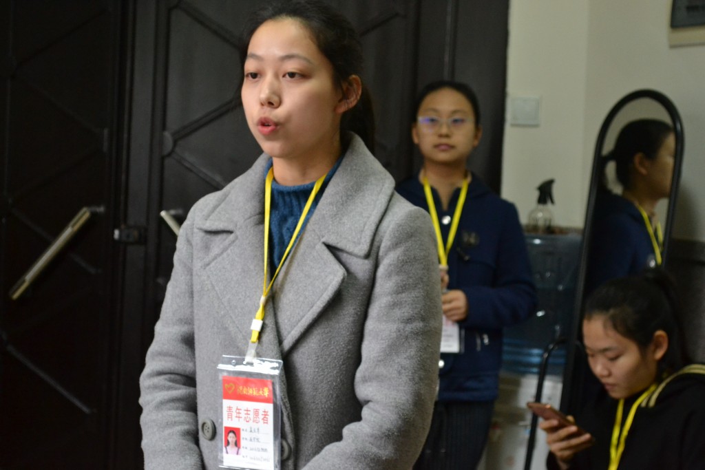 第一轮讲解,志愿者们姿势仪态落落大方,普通话标准,吐字清楚。但因为第一次上岗第一位志愿者稍显紧张,偶有忘词现象。第二位则更加自信,将烈士生平英勇事迹娓娓道来,吸引了一批游客。一轮讲解完毕后,志愿者们回到办公室,负责人提出先让大家自评。来自文学院16级的包金东反思自己“声音不大,吸引不了游客,接下来要更加自信”。自评完毕后负责人一一点评,她指出“大家普遍的问题就是说话声音没有起伏,听起来像是在背书,而且缺少与游客的互动”,说完之后便给大家做了示范。