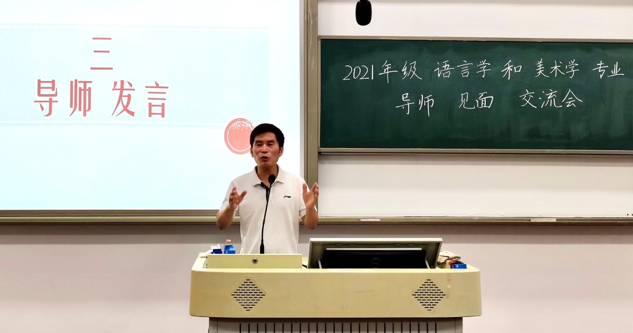 (通讯员谢洁、胡湘宇、熊茁)9月23日18:30,文学院2021年级语言学和美术学研究生导师见面和入学思政教育会议在文渊楼413教室举行。彭泽润、贺福凌、刘东升、林海云4位导师来到现场并且做了推心置腹的发言和指导。学科带头人彭泽润教授希望大家珍惜机会,先学做人,接着锤炼身体,再做好事情,3年后能够100%顺利就业。接着,3个年级的大型“传帮带”交流会开始。3年级粟碧琴分享了自己3次参加田野调查的经历,给即将到来的“传帮带”性质田野调查试验做了指导。交流中,大家从学习到生活无所不谈。持续3个多小时的交流,帮助新生消除了很多迷茫,使新生更加有目的和方向地开启研究生阶段的生活。