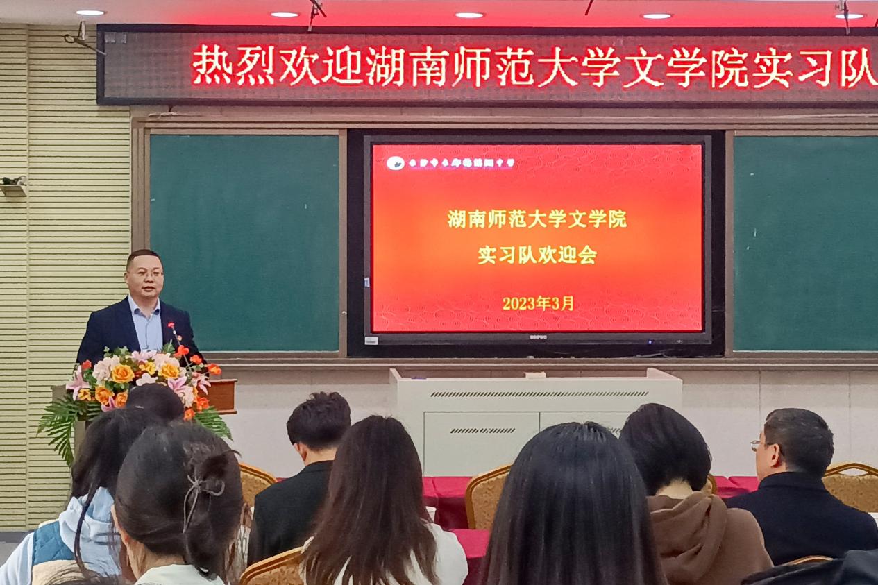 (通讯员 王俊钦 郭涵)3月6日上午,长郡梅溪湖中学科技楼104室,洋溢着热烈的气氛,欢迎湖南师范大学文学院中文系2020级实习队的仪式隆重而简约地举行。会议由实习学校教导主任蒋慧玲主持,副校长王旭、初二年级语文备课组长滕辉群、初二年级全体指导老师,文学院副院长徐朝红、领队黄乐平老师和实习队全体同学出席。