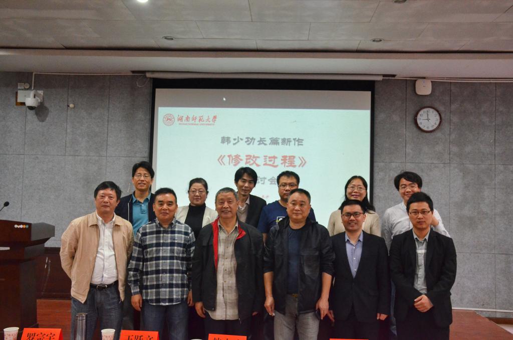研讨会由文学院赵树勤教授主持,参会嘉宾有当代著名作家韩少功、湖南省作家协会主席王跃文、湖南出版投资控股集团董事长龚曙光以及文学院部分领导、老师、研究生等。韩少功在致辞中表示自己将《修改过程》当作对那一代人的回望与反省,怀念的同时更多了一份对改革开放四十年的怀疑与思考。