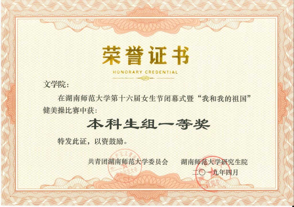 文学院荣获湖南师范大学第十六届健美操比赛本科生组一等奖